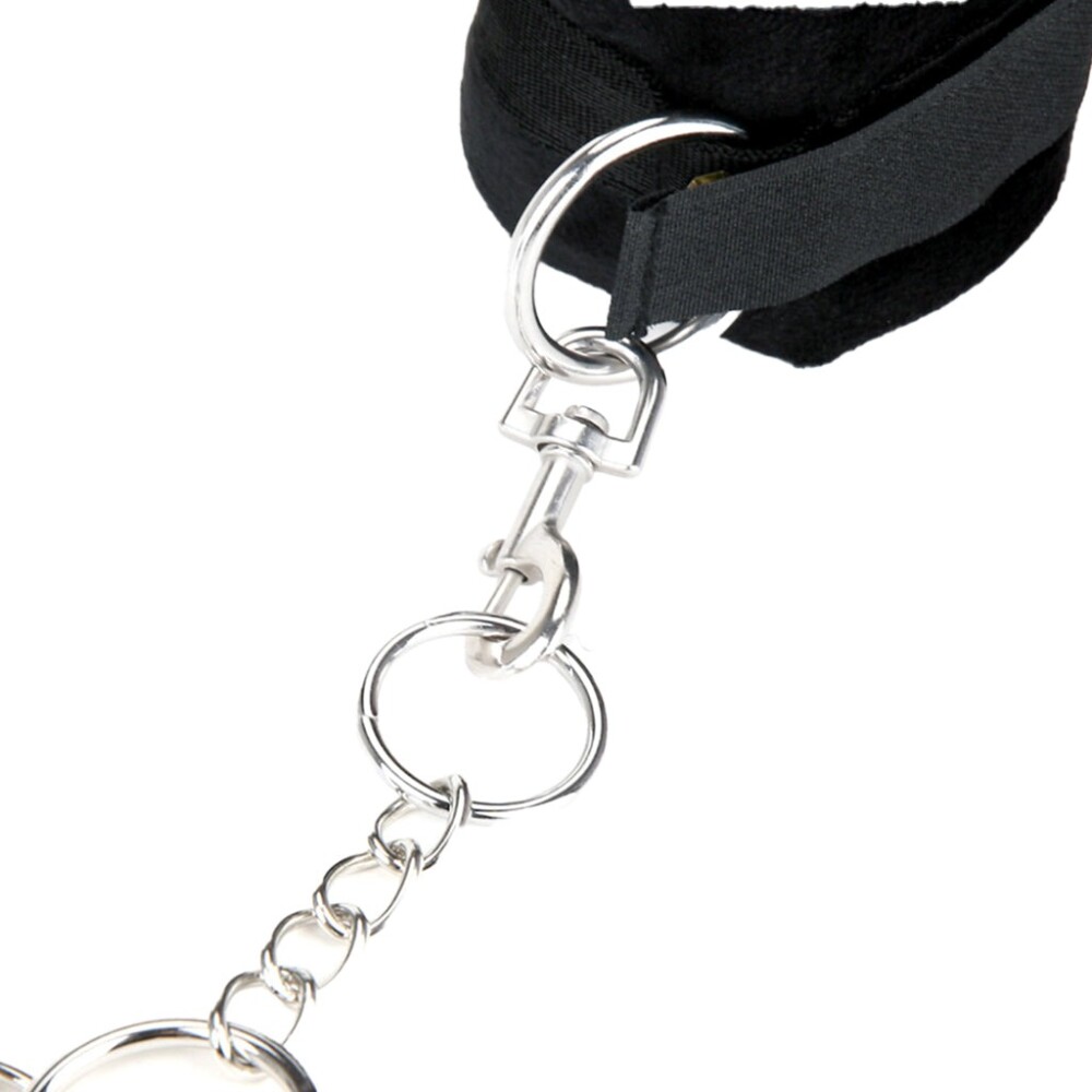 El set incluye cuatro esposas (2 para las muñecas y 2 para los tobillos) más un conector de cadena metálica, permitiendo mantener brazos y piernas juntos detrás o delante del cuerpo, según la posición que mejor se adapte a su juego. Las esposas también pueden usarse por separado, ya que su diseño universal es compatible con la mayoría del equipamiento de bondage.