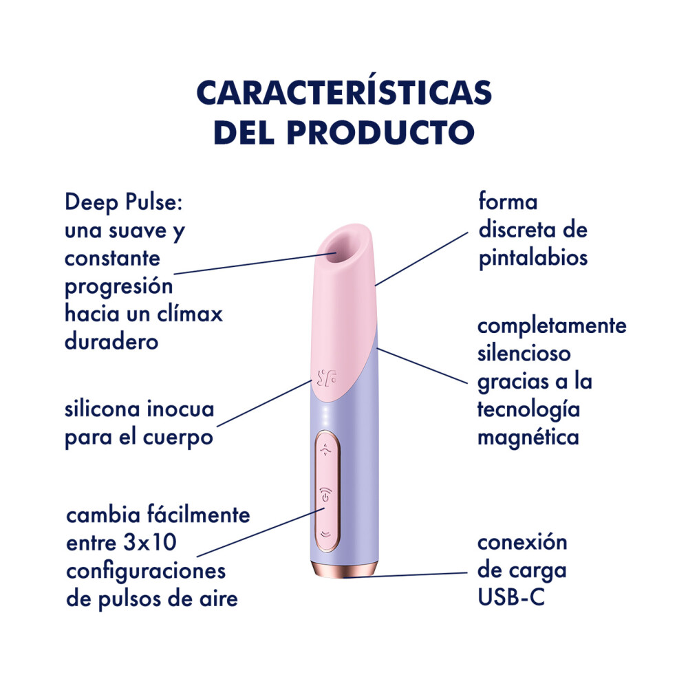 Presentamos el Bold Kiss, la próxima evolución en Vibradores Deep Pulse. A diferencia de los estimuladores Air Pulse convencionales, el Bold Kiss te permite vivir una experiencia gradual e inmersiva que estimula todo el clítoris para un clímax más intenso y duradero. Su exclusiva tecnología Deep Pulse fomenta un flujo sanguíneo más completo, ofreciendo un placer más profundo y un orgasmo más largo y satisfactorio.